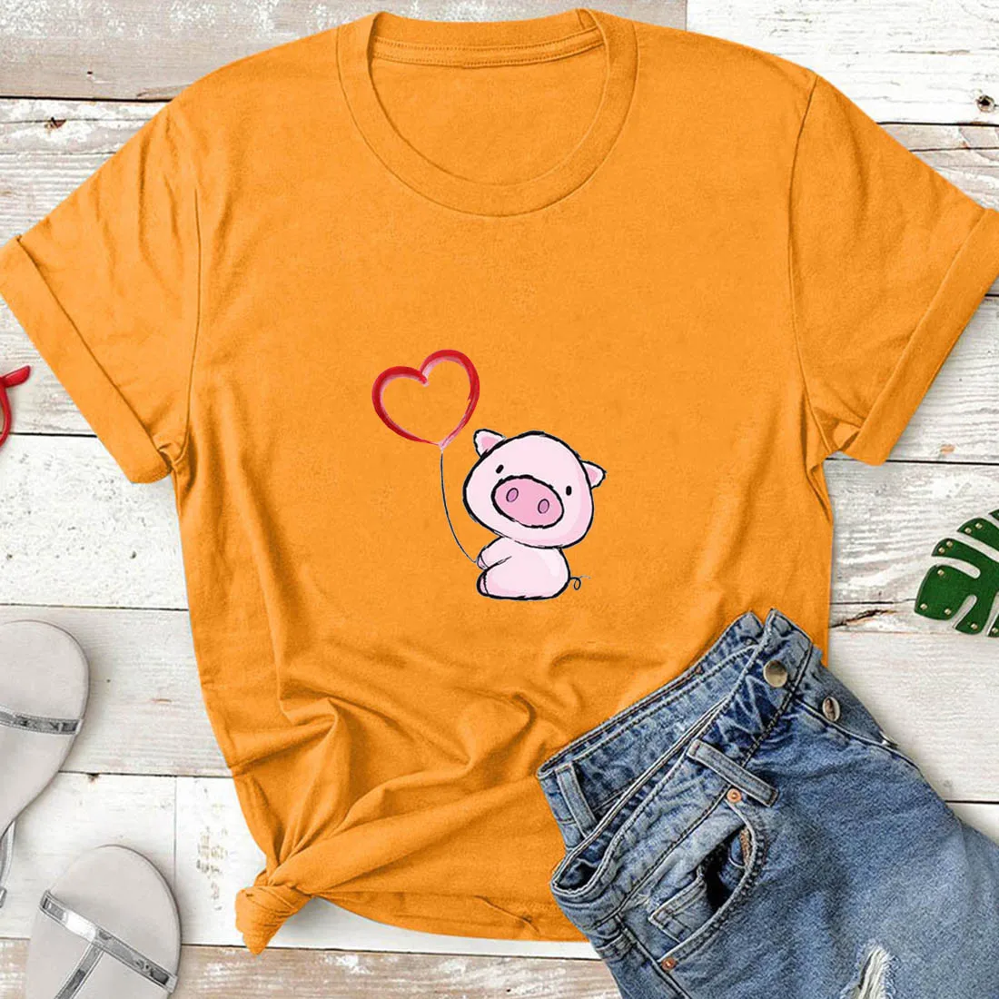 Футболка женская с принтом в виде свиньи, милая Повседневная рубашка с коротким рукавом, топ с принтом в виде розовой свиньи