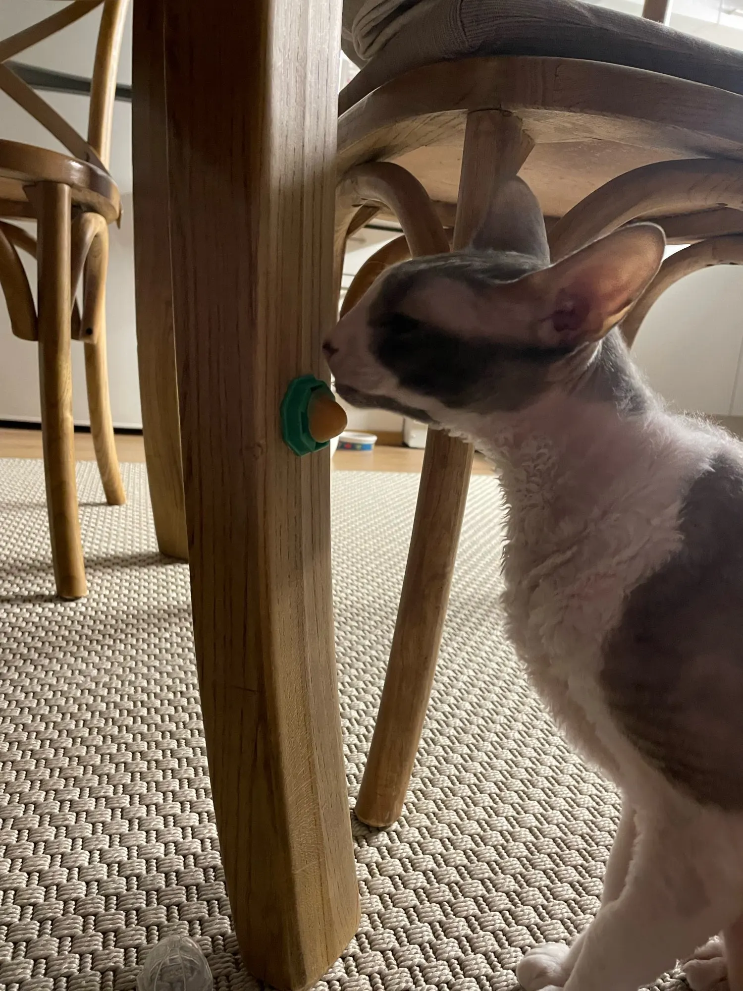За основой конфет есть клейкая лента, которая может быть закреплена на ножках стола, ножках стула, земле и т. д., чтобы облегчить Лизу кошки.