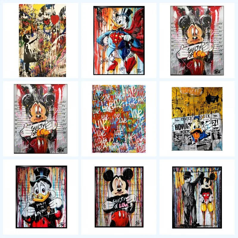 Disney милый живопись на холсте, мультфильмы с Микки Маусом и Минни...