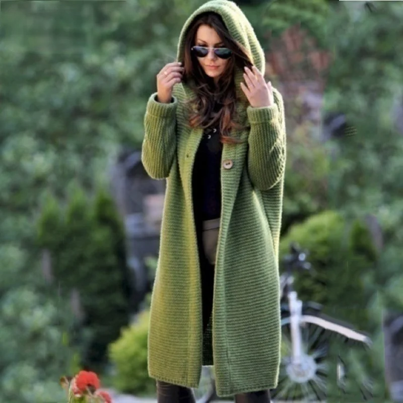 Осень-зима 2021, длинный кардиган с капюшоном, Женский Повседневный свитер с длинным рукавом в Корейском стиле, свободные вязаные кардиганы