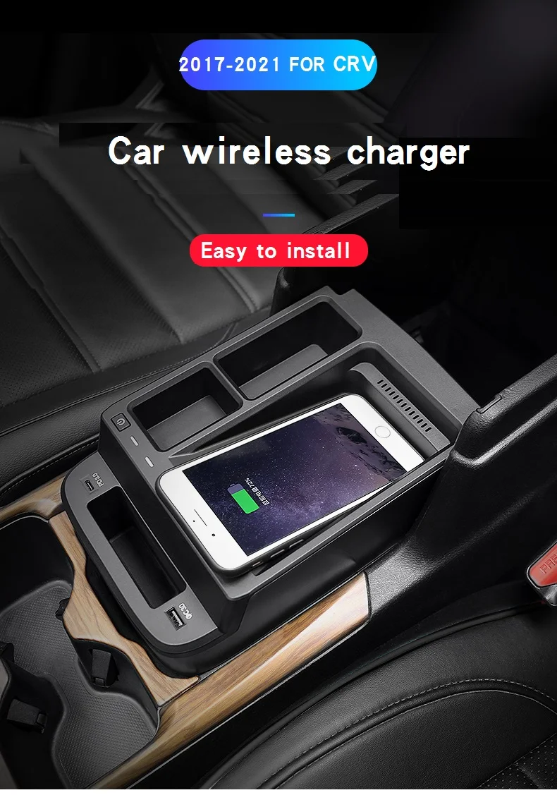 Автомобильное беспроводное зарядное устройство 15 Вт для Honda CRV 2017-2021, зарядное устройство для телефона QI, чехол для быстрой зарядки, держатель для телефона, аксессуары для iPhone