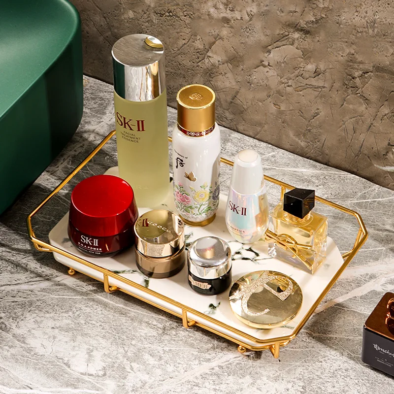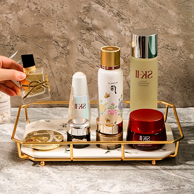 Ванная комната лоток для хранения скандинавских имитация мрамора смолы лоток Туалет прямоугольные украшения лоток для хранения Роскошные Kithen Органайзеры