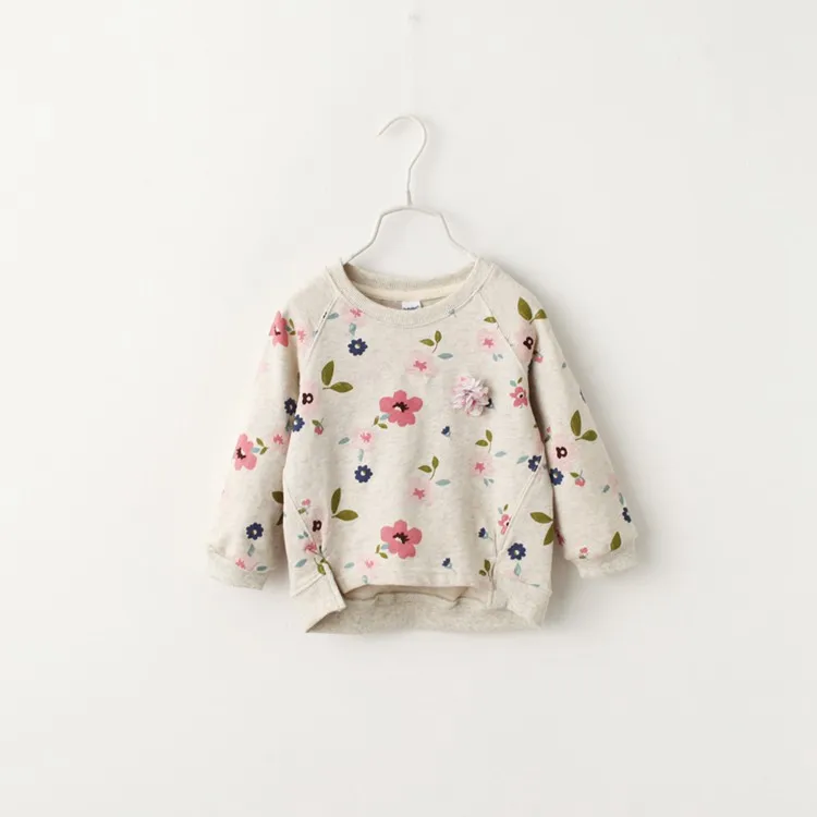 Новинка 2021 года; Толстовки с капюшоном для девочек; Сезон весна-осень; Свитера в Корейском стиле; Детский хлопковый свитер с цветочным принтом; Детская одежда с круглым вырезом