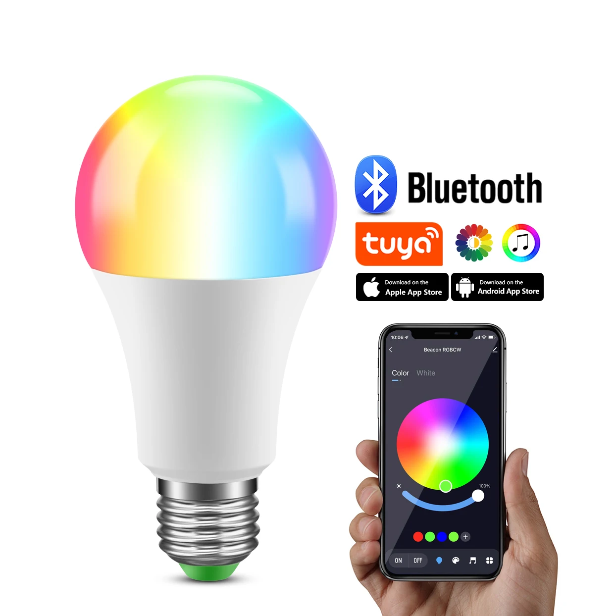 Bluetooth E27 RGBW + WW светильник лампа 15 Вт RGB управление через приложение умная лампа с беспроводным управлением 110 В 220 В Регулируемая яркость Волшебный дом освещение Декор