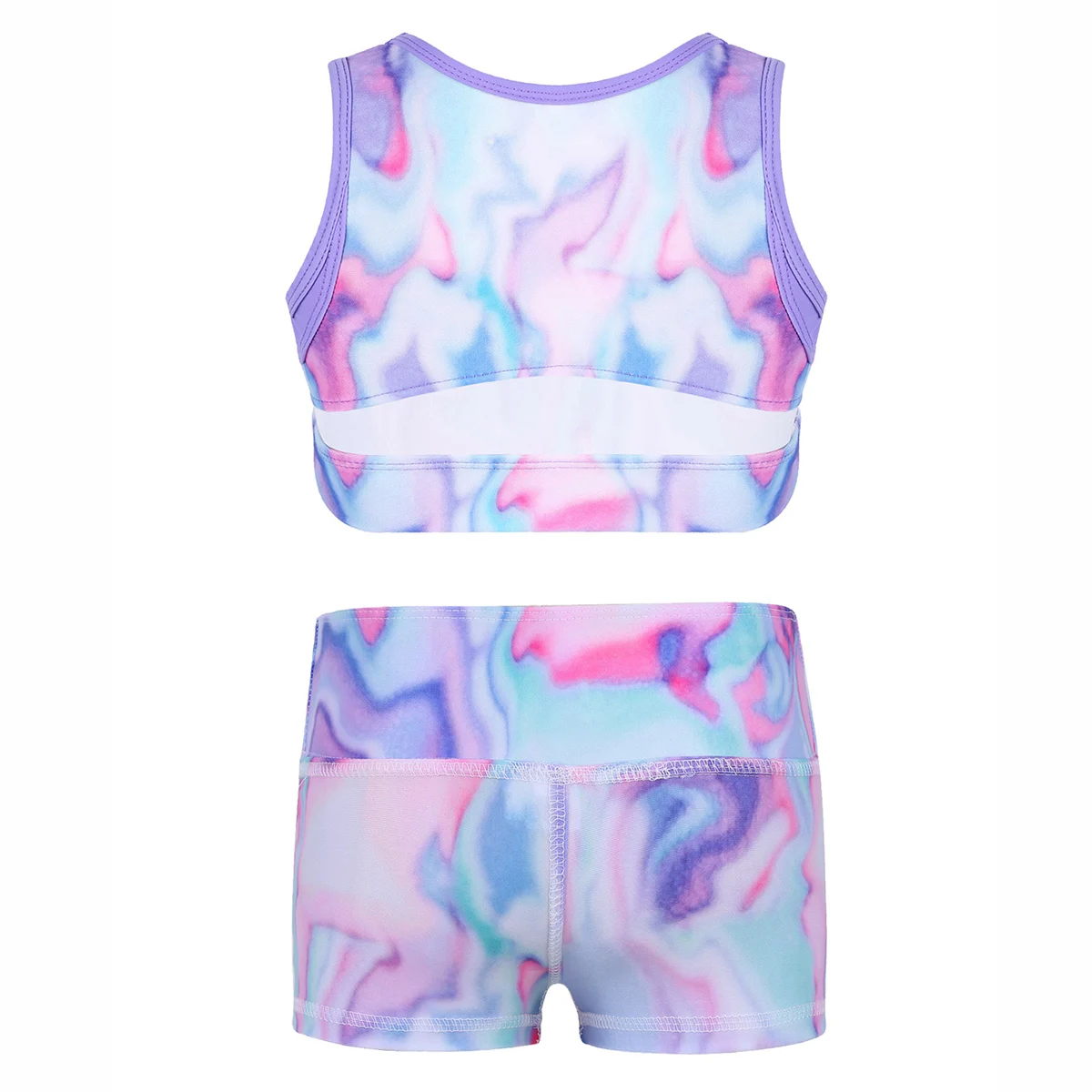 Особенности:Наряд изготовлен из полиэстера, ручная стирка.Таблица размеров означает возраст для девочек, но только для общего руководства.Укороченный топ без рукавов с круглым вырезом. Красивый дизайн с галстуком-краской. Застежка на застежке, зауженная посадка.Подходящие шорты с высокой талией; Дизайн с вырезами для мальчиков. Эластичная ткань, удобная в носке.Идеально подходит для балета, танцевального класса, выступления на сцене, тренировки и т. д.