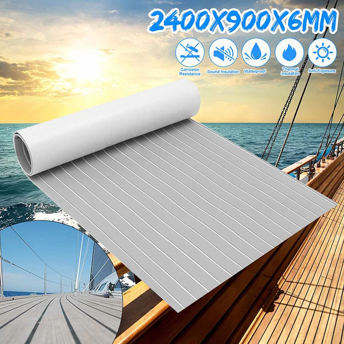 Самоклеящийся настил для лодки из пеноматериала 2400x900x6 мм, настил из искусственного тика, нескользящий синтетический настил для яхты из тика, однотонный серый