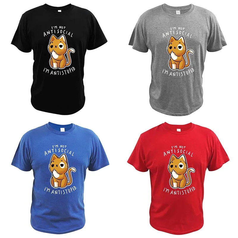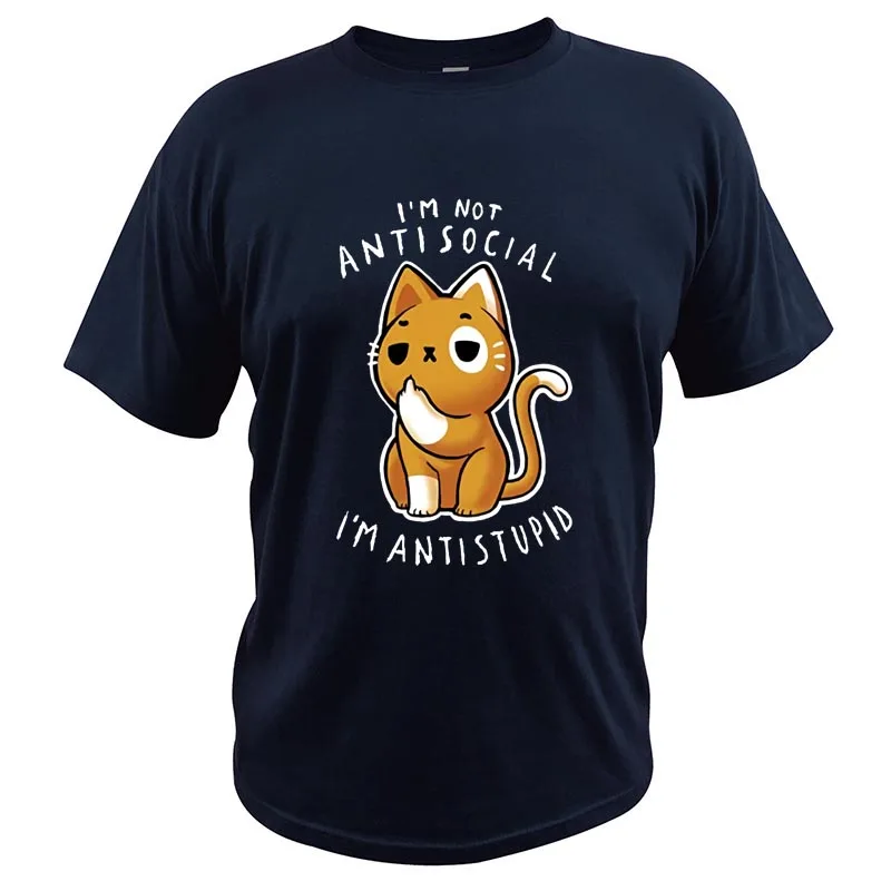 Футболка I'm Not Antisocial I'm antiглупая, крутая футболка с котами и персонажами, футболки с коротким рукавом и круглым вырезом из 100% хлопка