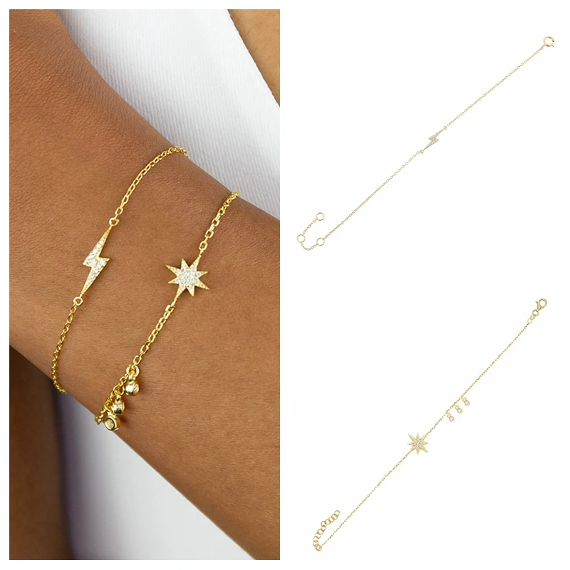 AIDE 2021 тренд 925 серебро молния Звезда браслет 18k Золотая цепочка для девушки подарок женские роскошные ювелирные изделия женские браслеты CZ