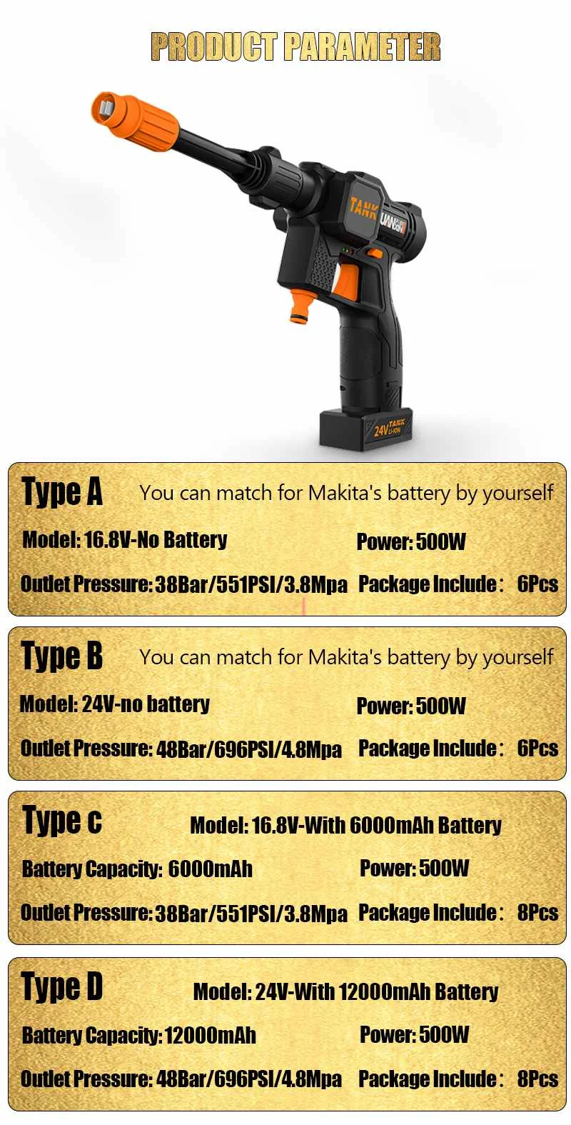 Тип 3Модель:16,8 в-с батареей 6000 мАч 2Емкость батареи:6000 мА-чДавление на выходе:38Bar/551PSI/3.8MpaУпаковка включает: 8 шт.