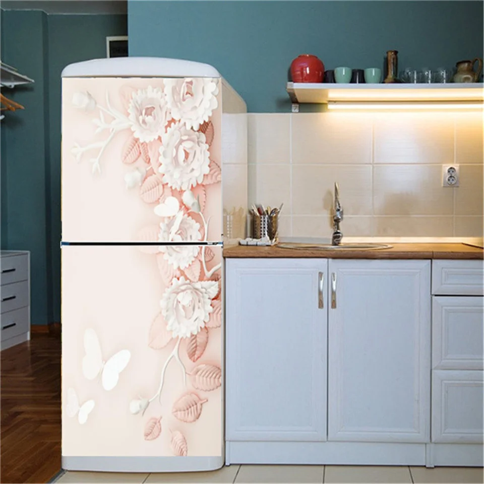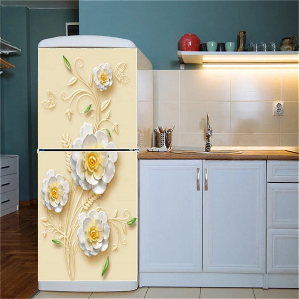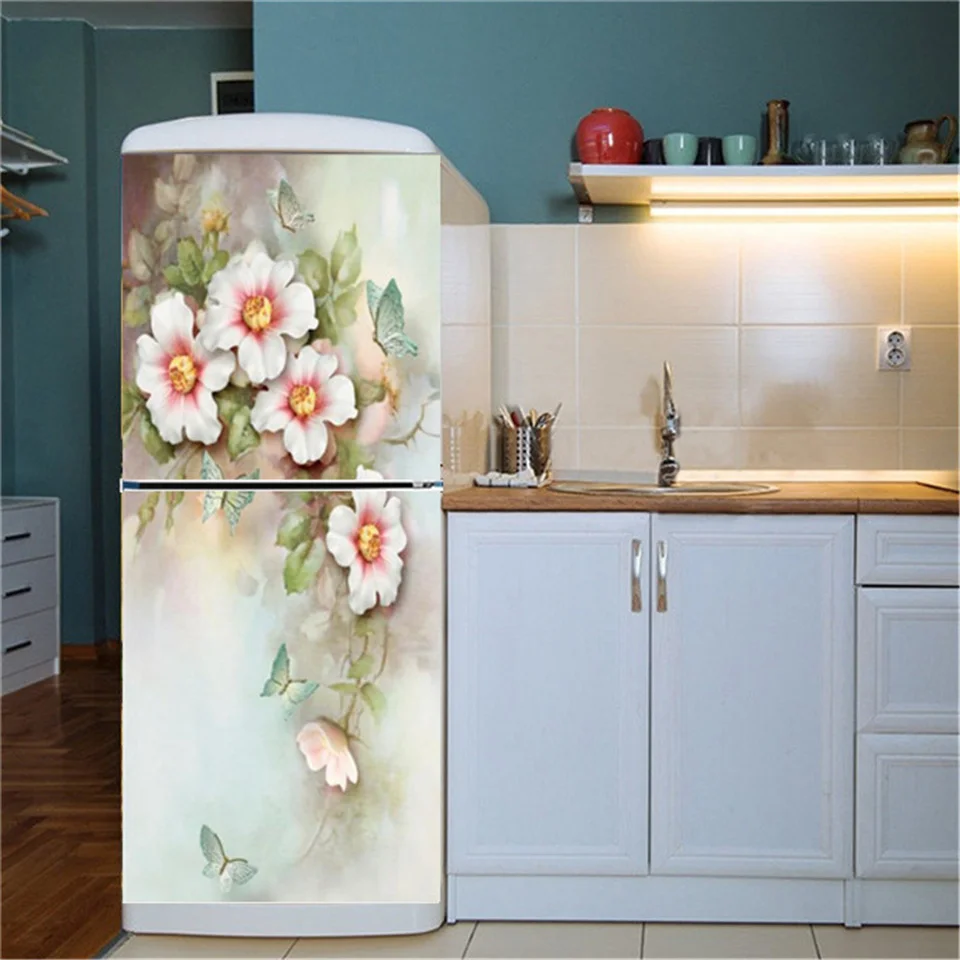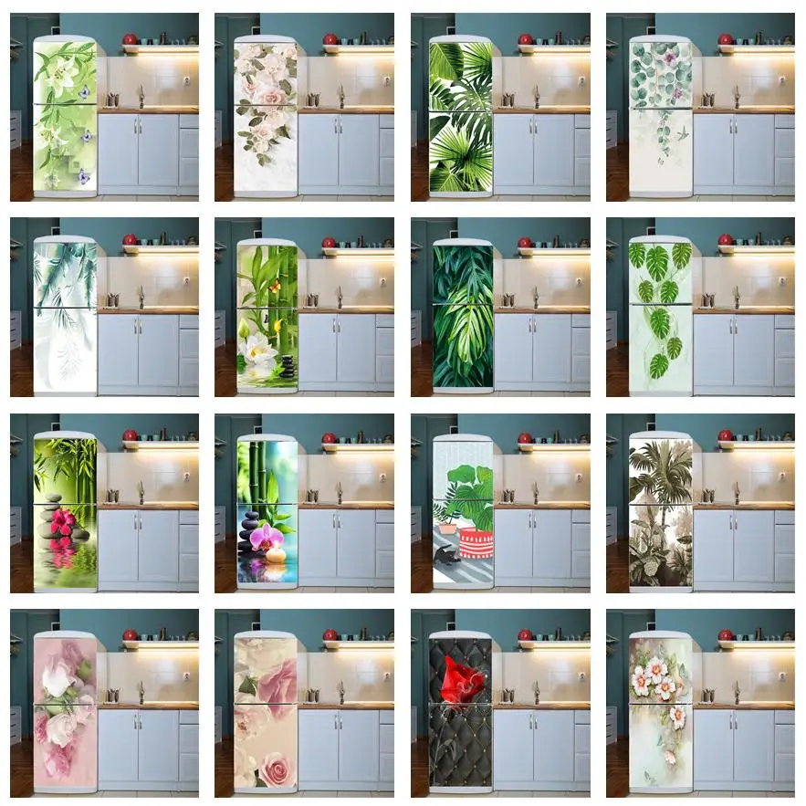 Зеленый лист цветок 3D обои для холодильника клей виниловые наклейки на холодильник Водонепроницаемый плакат домашнего декора искусства настенной Стикеры