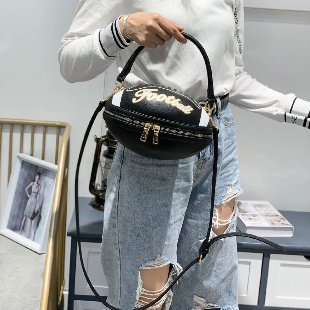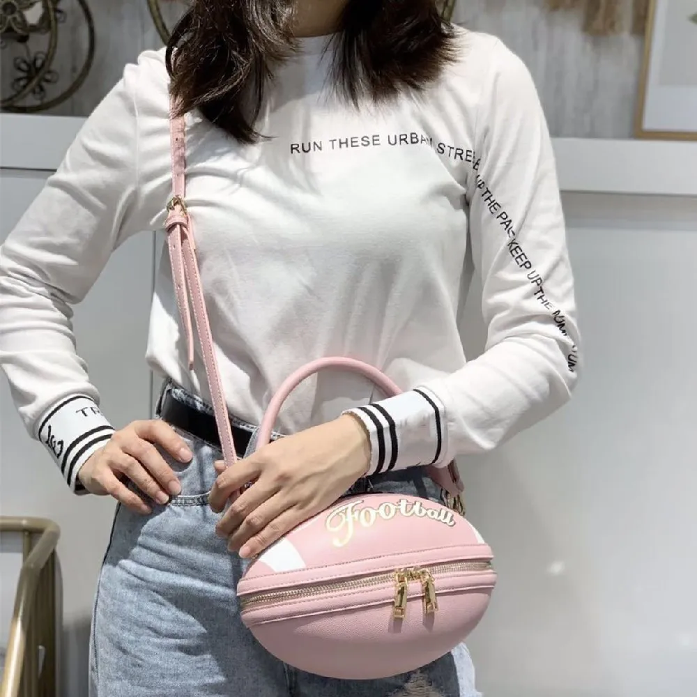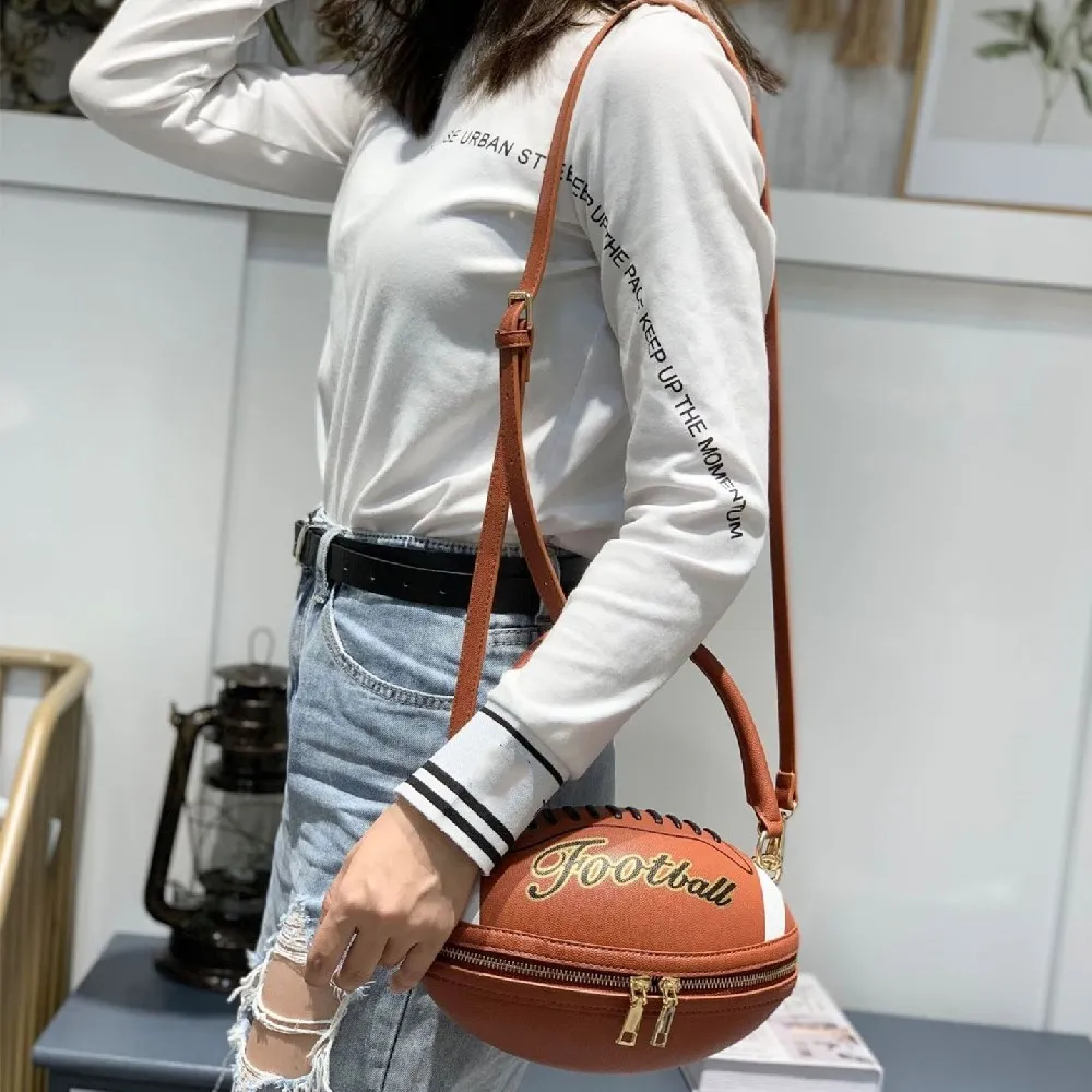 2021 Высококачественная женская сумка через плечо с буквенным принтом, сумка через плечо в форме регби, Жесткая Сумка из искусственной кожи на молнии для взрослых