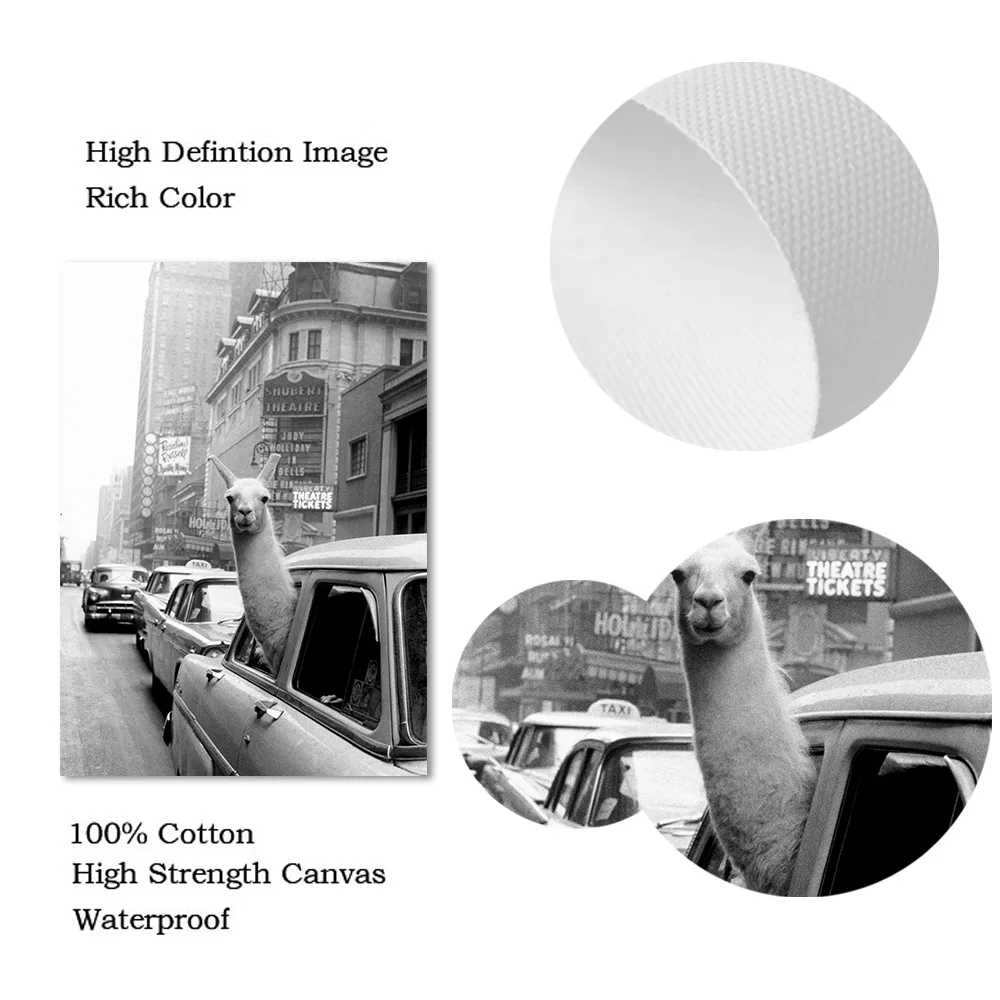 Черно-белый автомобиль Альпака плакат уличная Зебра слон настенное искусство холст живопись животное печать скандинавские настенные картины Домашний декор