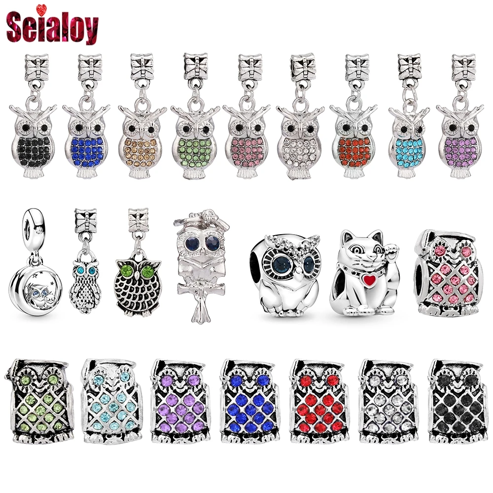Шарм-подвеска в виде совы, серебристый, разных цветов
