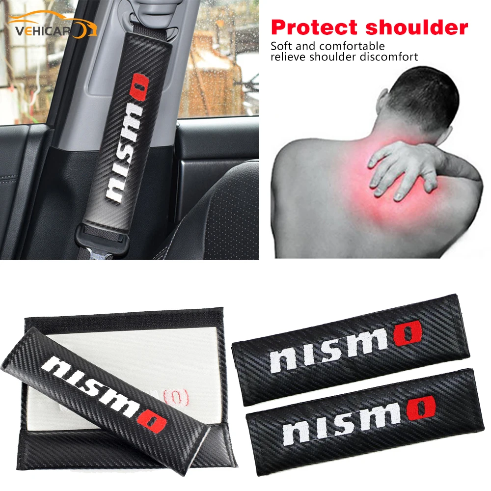 VEHICAR 2 шт. углеродного волокна автомобиля Безопасность ремня безопасности водителя плеча Защитная пленка для электротранспортного средства NISMO Логотип Вязание "сделай сам"