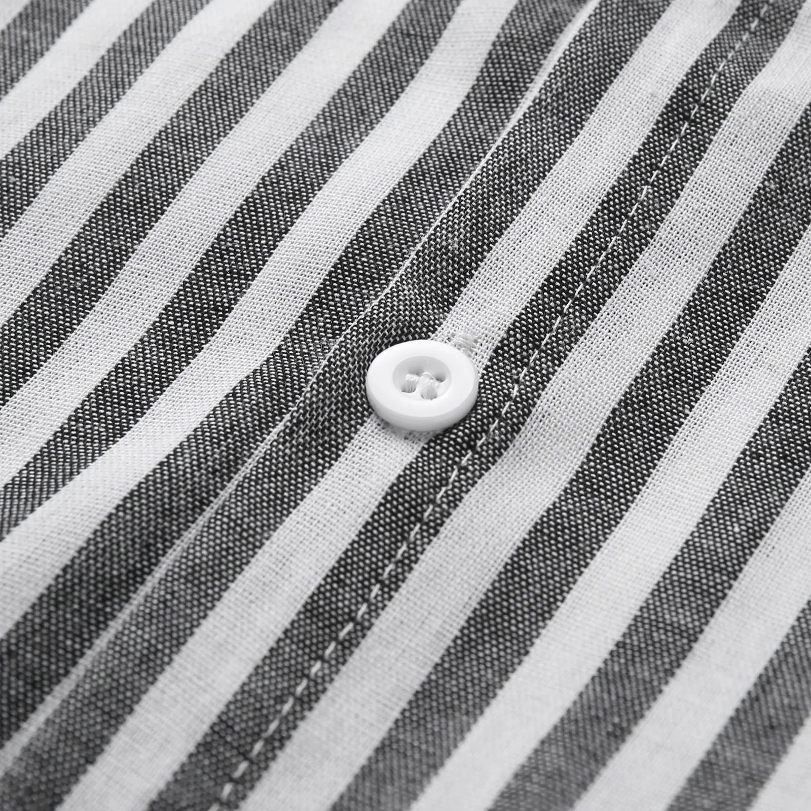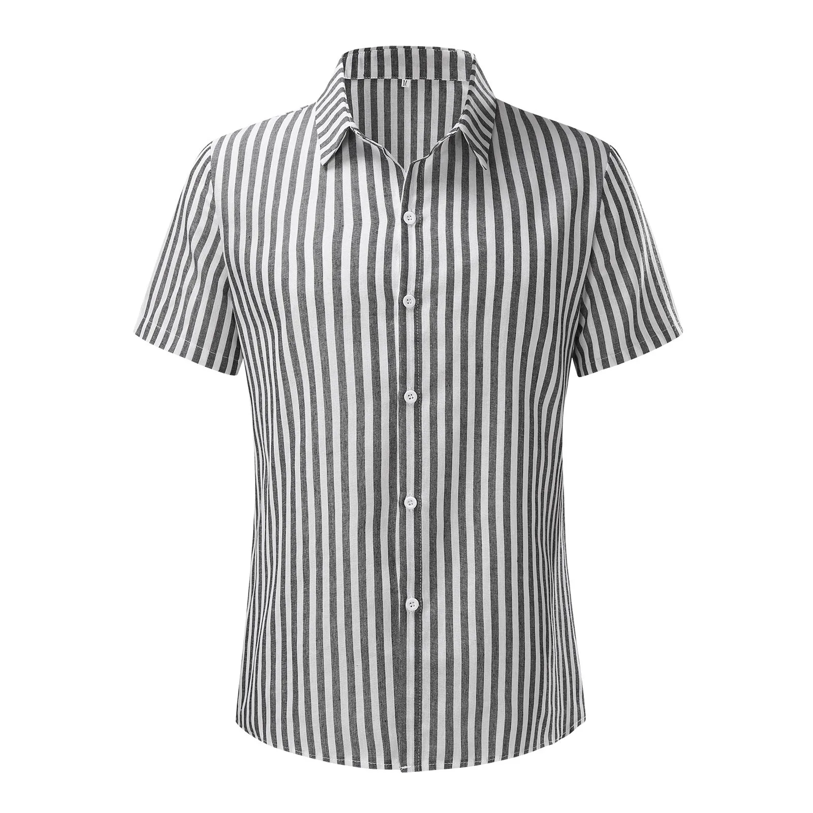 Рубашка мужская летняя, из хлопка и льна, в полоску, на пуговицах, с отворотом и коротким рукавом, M-3xl