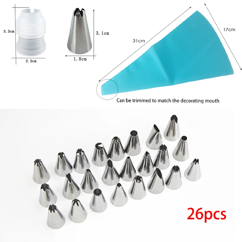 24x насадка для пирожных + 1 x кондитерский мешок + 1 x Пластиковый преобразователь трубопроводов