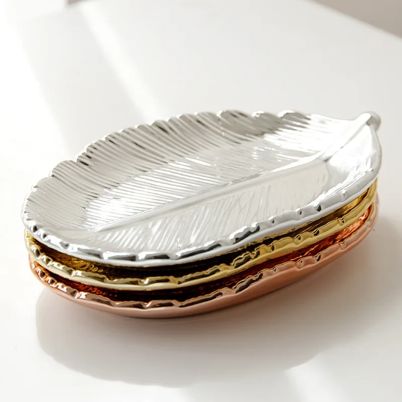 Ручной керамический подстаканник в виде листьев дерева, бронзовые подставки, подставки, украшения для ювелирных изделий, десертов, поднос для хранения серебряного цвета, украшение для стола