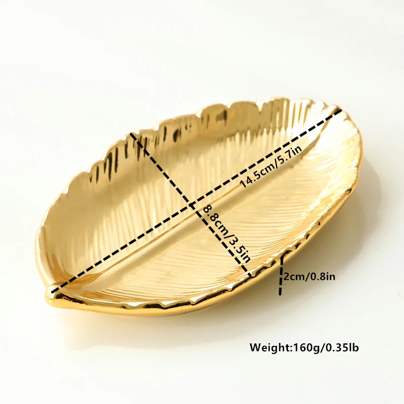 Женский керамический лоток для хранения с золотыми листьями, лоток ...