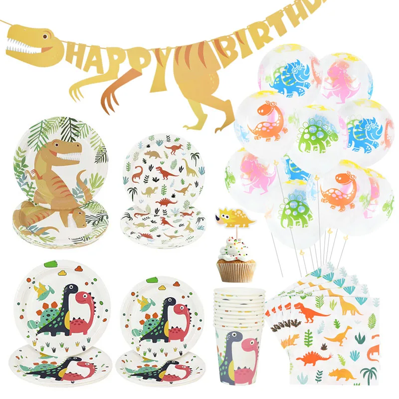 Набор посуды в стиле динозавра для вечеривечерние, одноразовые бумажные тарелки, чашки для малышей, детские украшения для дня рождения, вечевечерние НКИ, латексные воздушные шары динозавра