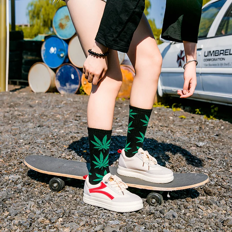 Модные женские хлопковые носки с принтом листьев носки с Кленовым листом мужские носки в стиле хип-хоп женские модные спортивные уличные брендовые носки