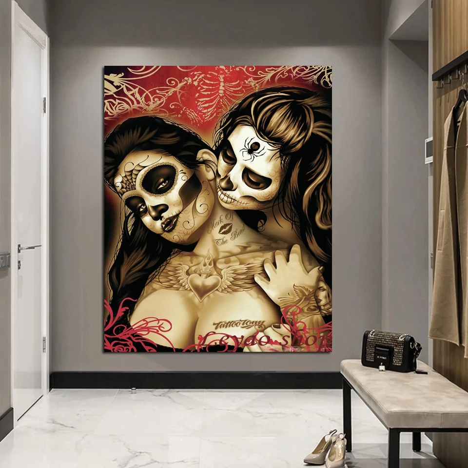 5D алмазная картина, тату, красота, Череп, лицо, женщина, вышивка крестом, алмазная квадратная/круглая вышивка, полная дрель, фотографии, домашний декор