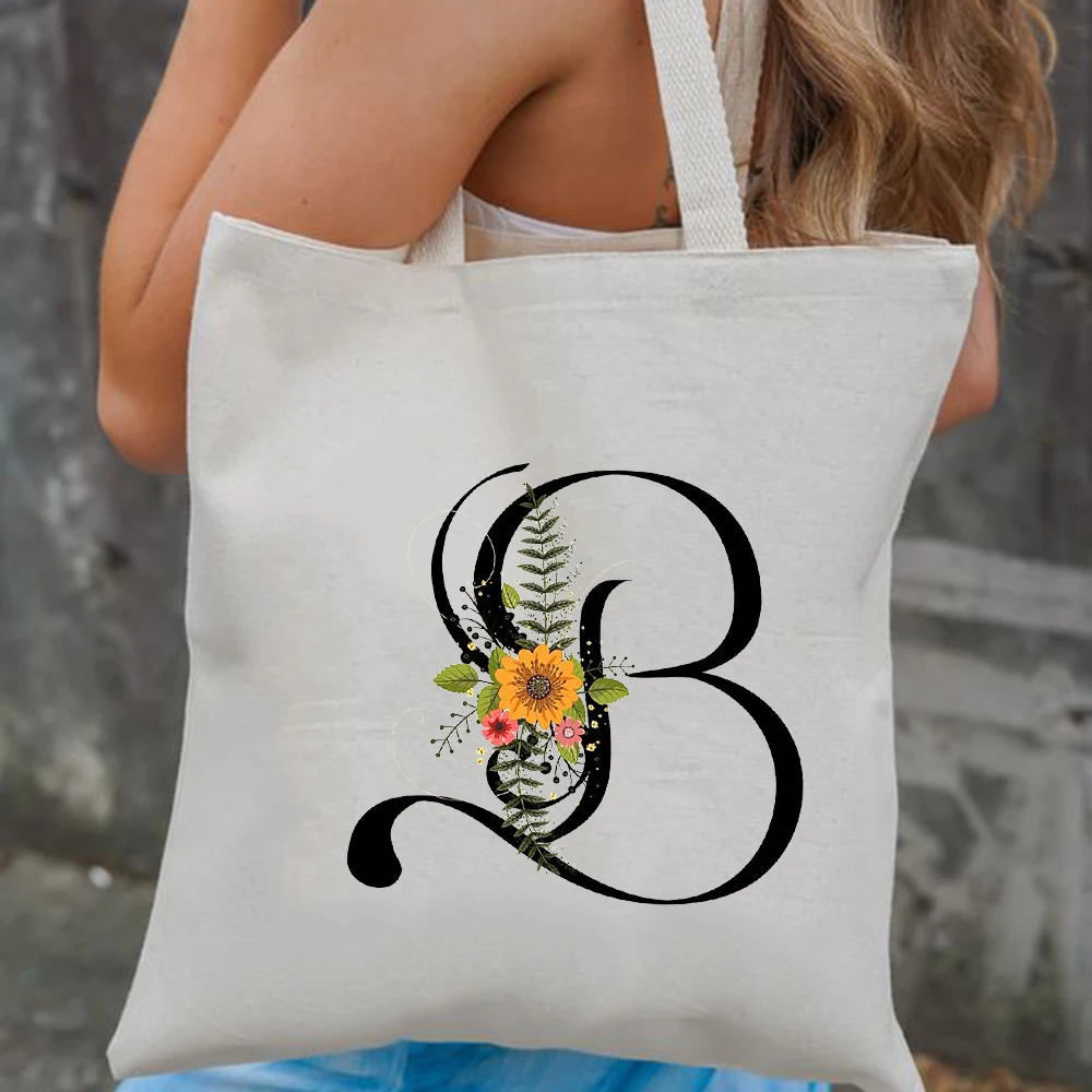 Холщовые Наплечные сумки с рисунком алфавита, цветов, милые женские...