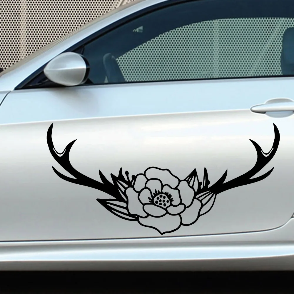 Мультяшные рога цветы виниловые наклейки на машину наклейка олень наклейка с изображением оленьих рогов Автомобиль Мотоцикл цветок стайлинга автомобилей