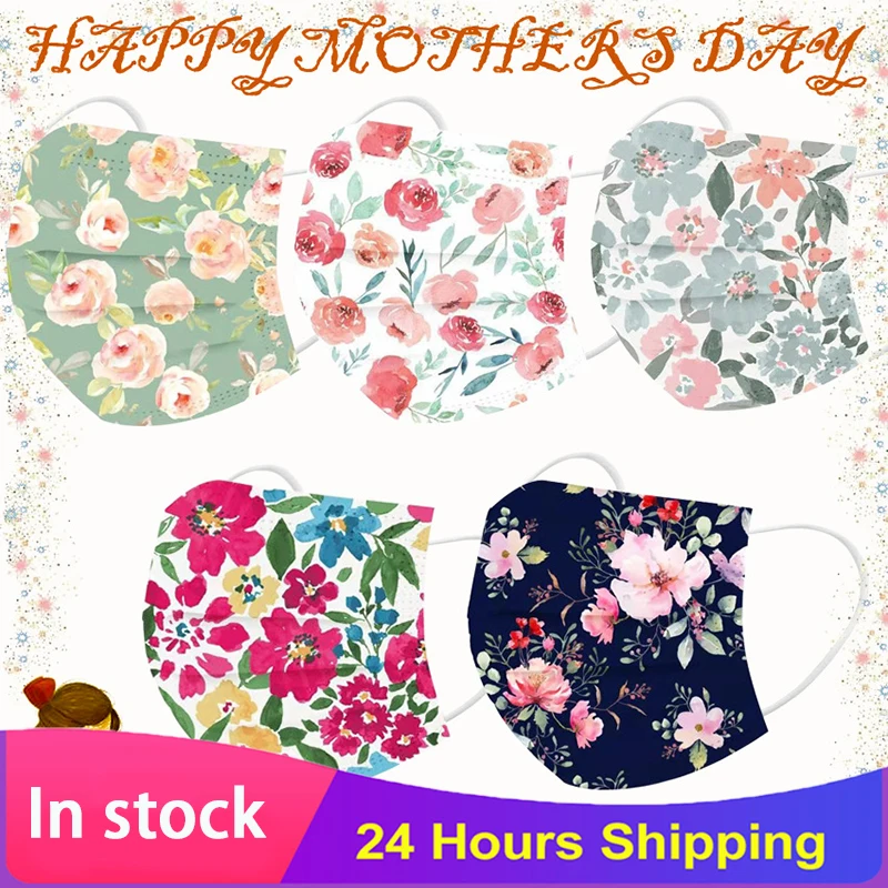 Маска для взрослых, маска для лица с цветочным принтом, одноразовая...