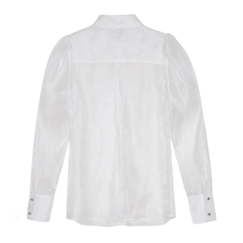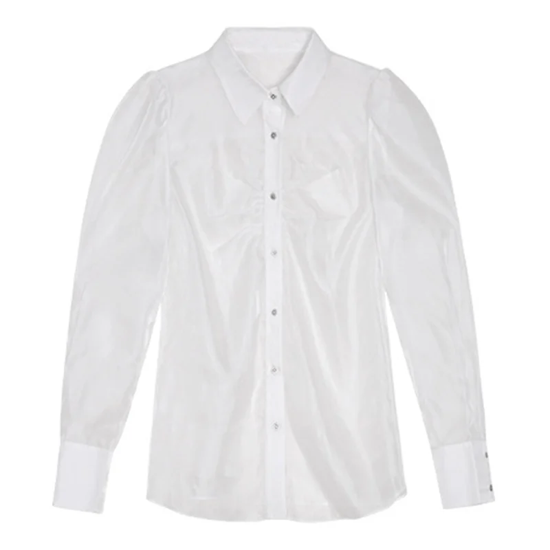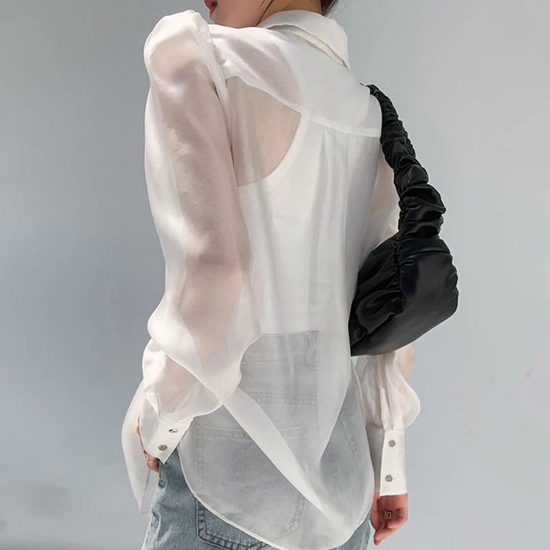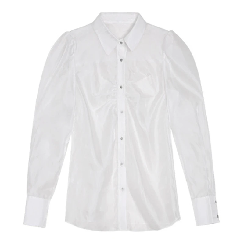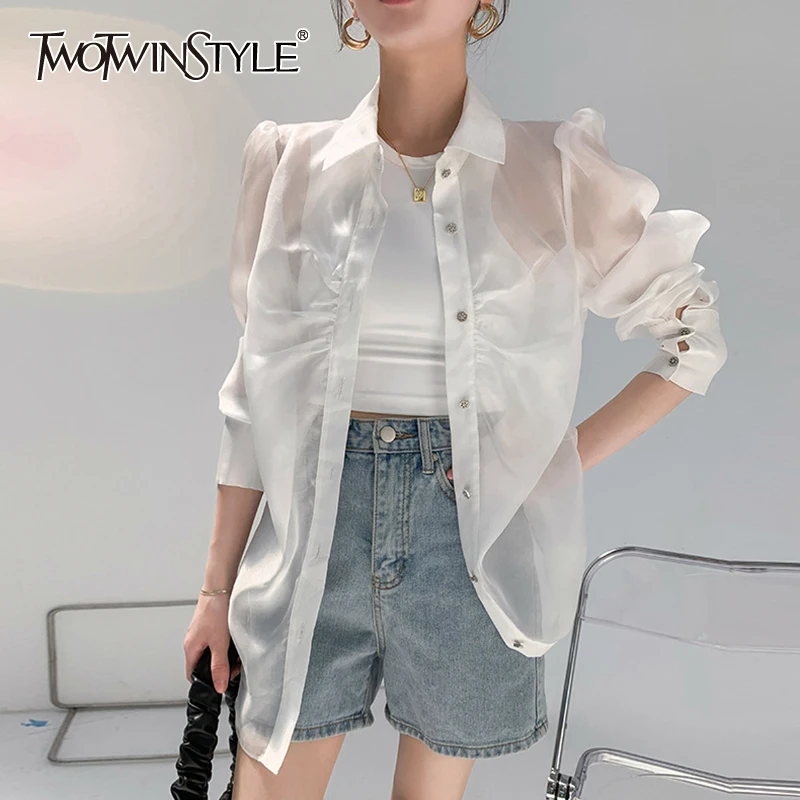 Женская Повседневная рубашка TWOTWINSTYLE, белая однотонная Свободная блузка с длинными рукавами и отложным воротником на лето, 2021