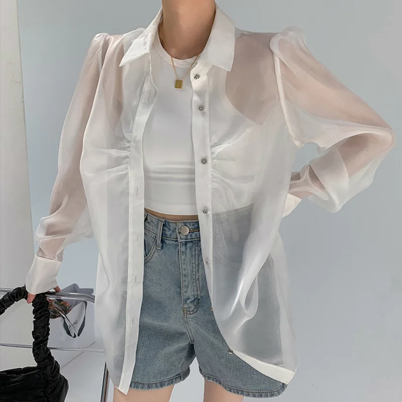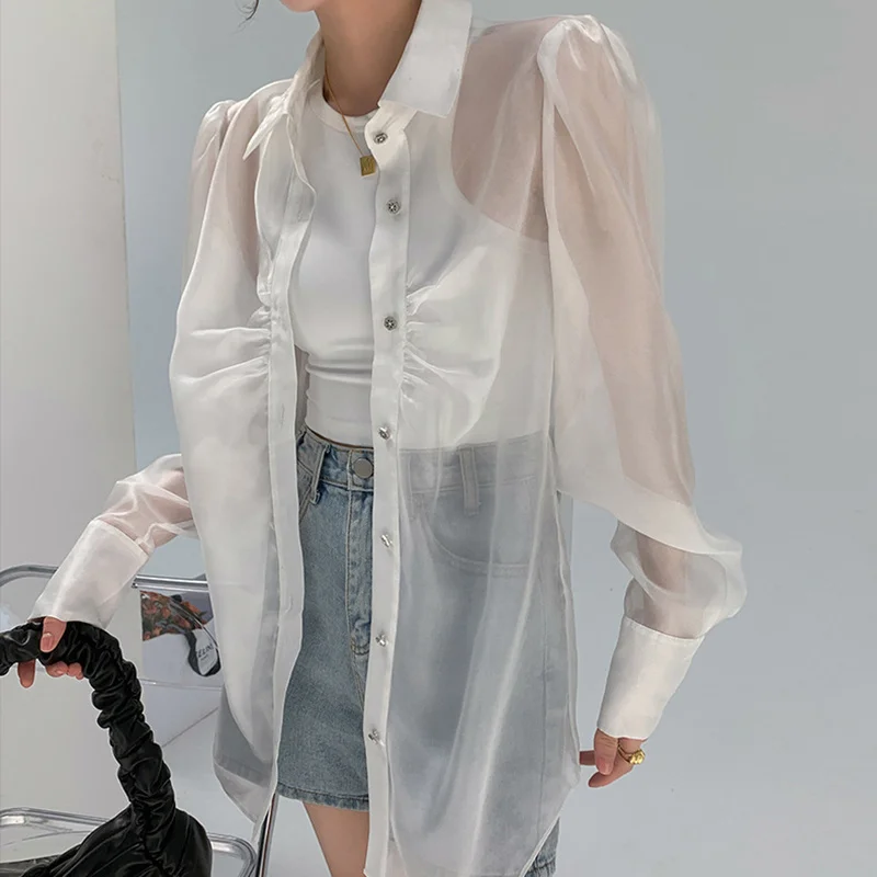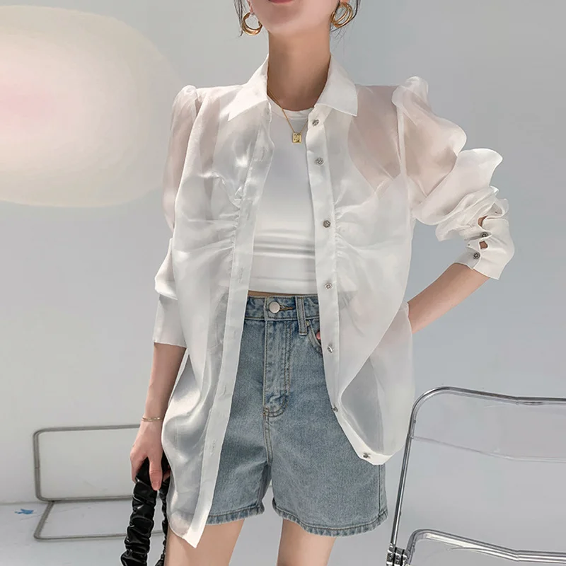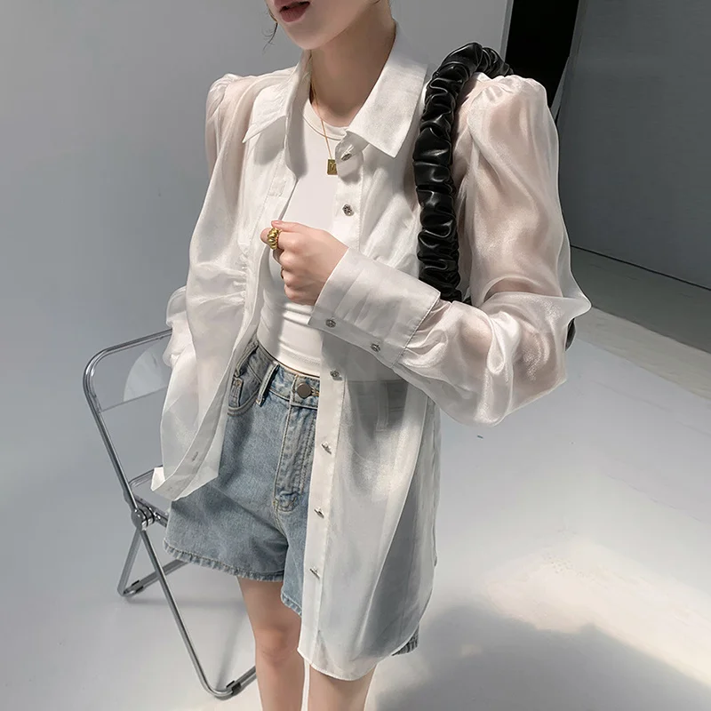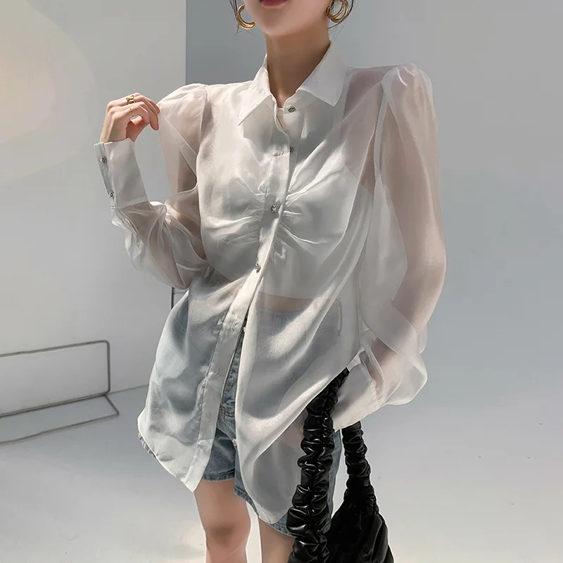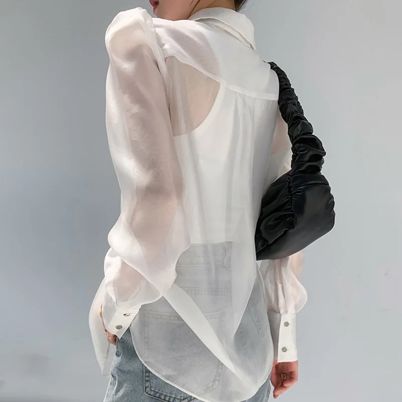Женская Повседневная рубашка TWOTWINSTYLE, белая однотонная Свободная блузка с длинными рукавами и отложным воротником на лето, 2021