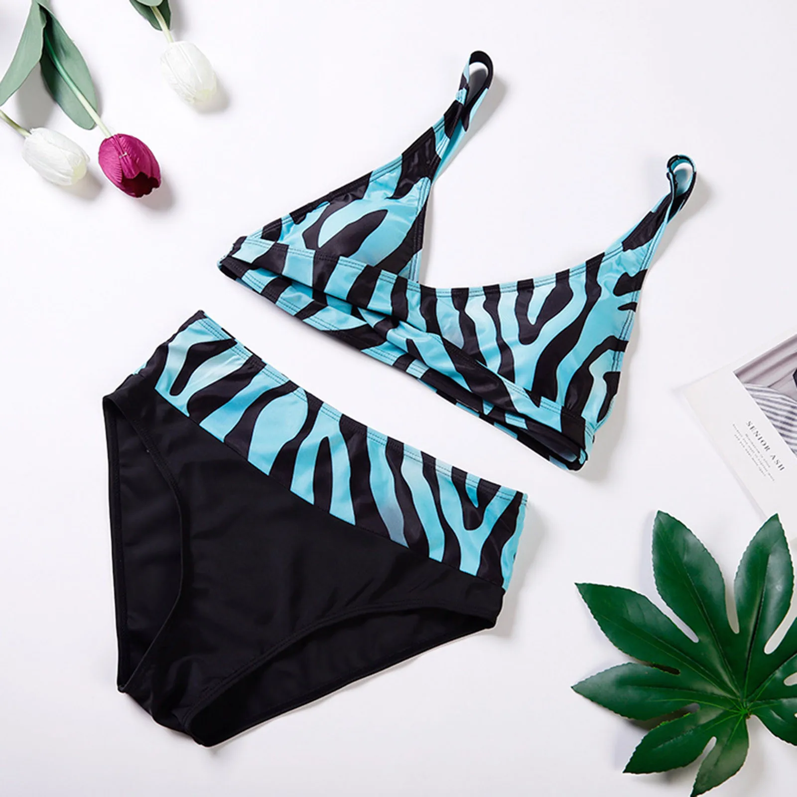 Женское бикини, Цветной полосатый принт, новинка 2021, сексуальный раздельный купальник, большие купальники