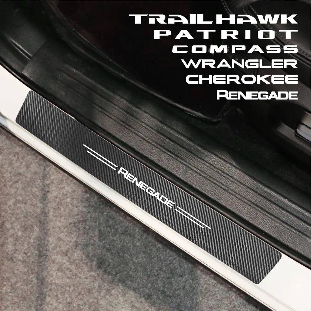 Накладка на порог автомобильной двери из углеродного волокна для Jeep Renegade Wrangler Compass Patriot Cherokee Trail Hawk защитные аксессуары