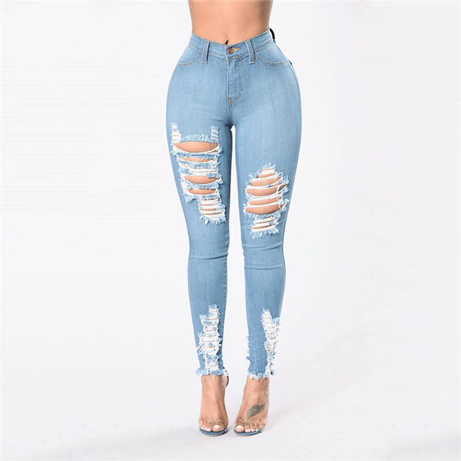 Женские джинсовые узкие брюки, джинсы с высокой талией, рваные брюк...