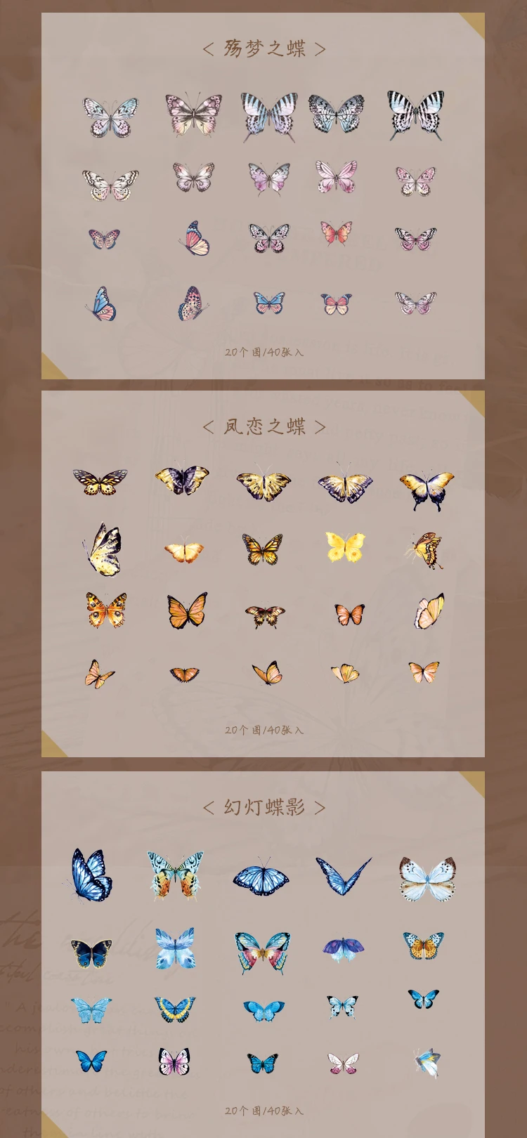 Образцы бабочек XINAHER, 40, шт.пакет г., винтажные наклейки для до...