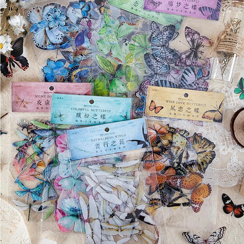 Стильные Декоративные Стикеры для самостоятельной сборки альбомов в виде бабочек и стрекоз, 40 цветов