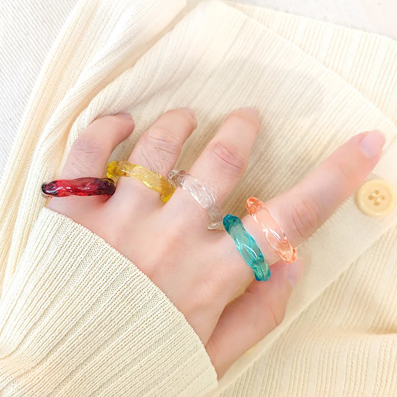 Винтажные витые круглые полимерные кольца для женщин, корейская мода, разноцветные прозрачные акриловые кольца, массивный дизайн, простое пластиковое кольцо