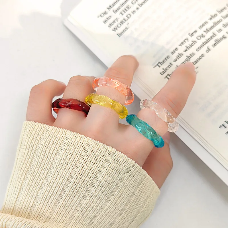 Винтажное круговое полимерное кольцо для женщин корейская мода красочное прозрачное акриловое кольцо эффектный дизайн простое пластиковое кольцо