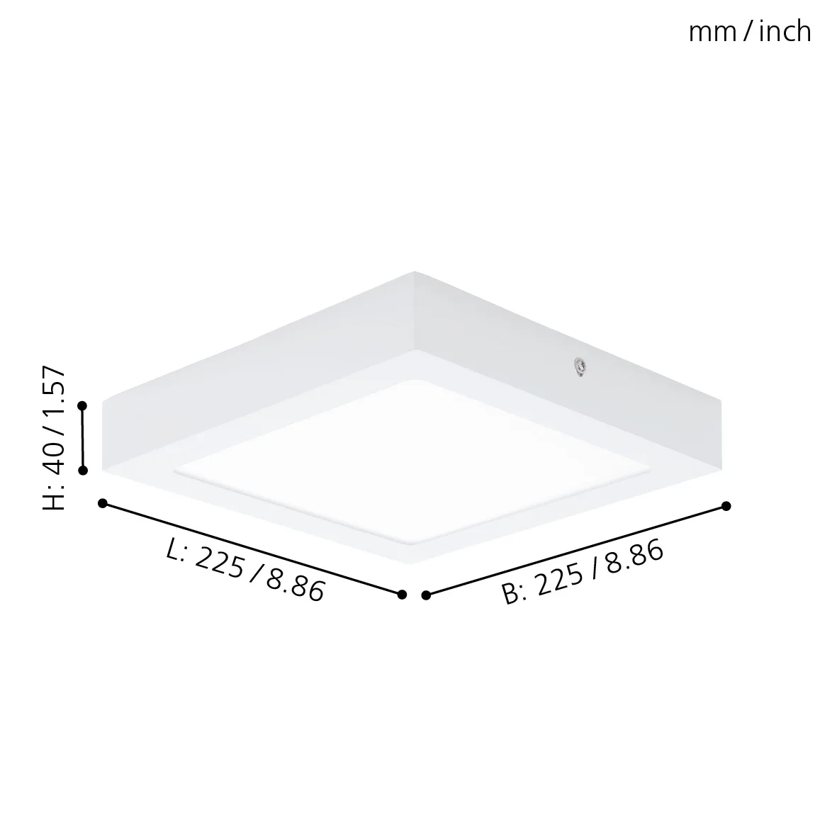 Светодиодный светильник ультратонкий накладной 94077 Eglo FUEVA 1,16,5W, 3000K, 225х225 светильник потолочный, на потолок