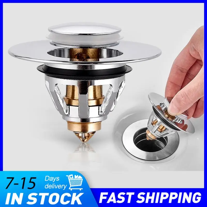Универсальная медная раковина с отскоком, выдвижной фильтр для слива, уловитель волос, пробка для ванны, раковина для душа, аксессуары для кухни
