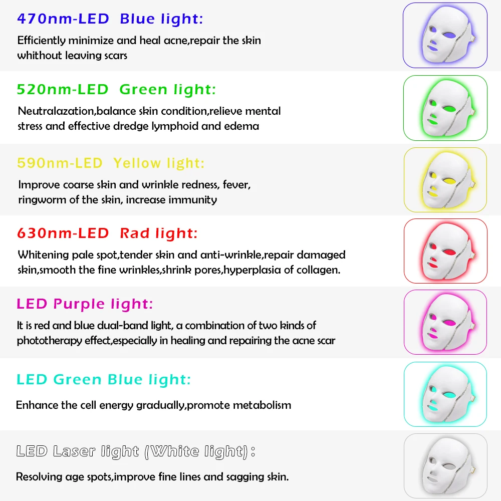 7 цветов светодиодный маска может решить проблемы с кожей: