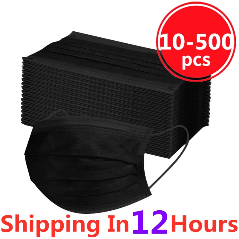 10-500 шт Черный Одноразовая Маска для лица черный рот маски Mascarillas маски для взрослых дышащая хирургические медицинские маски Mascherine
