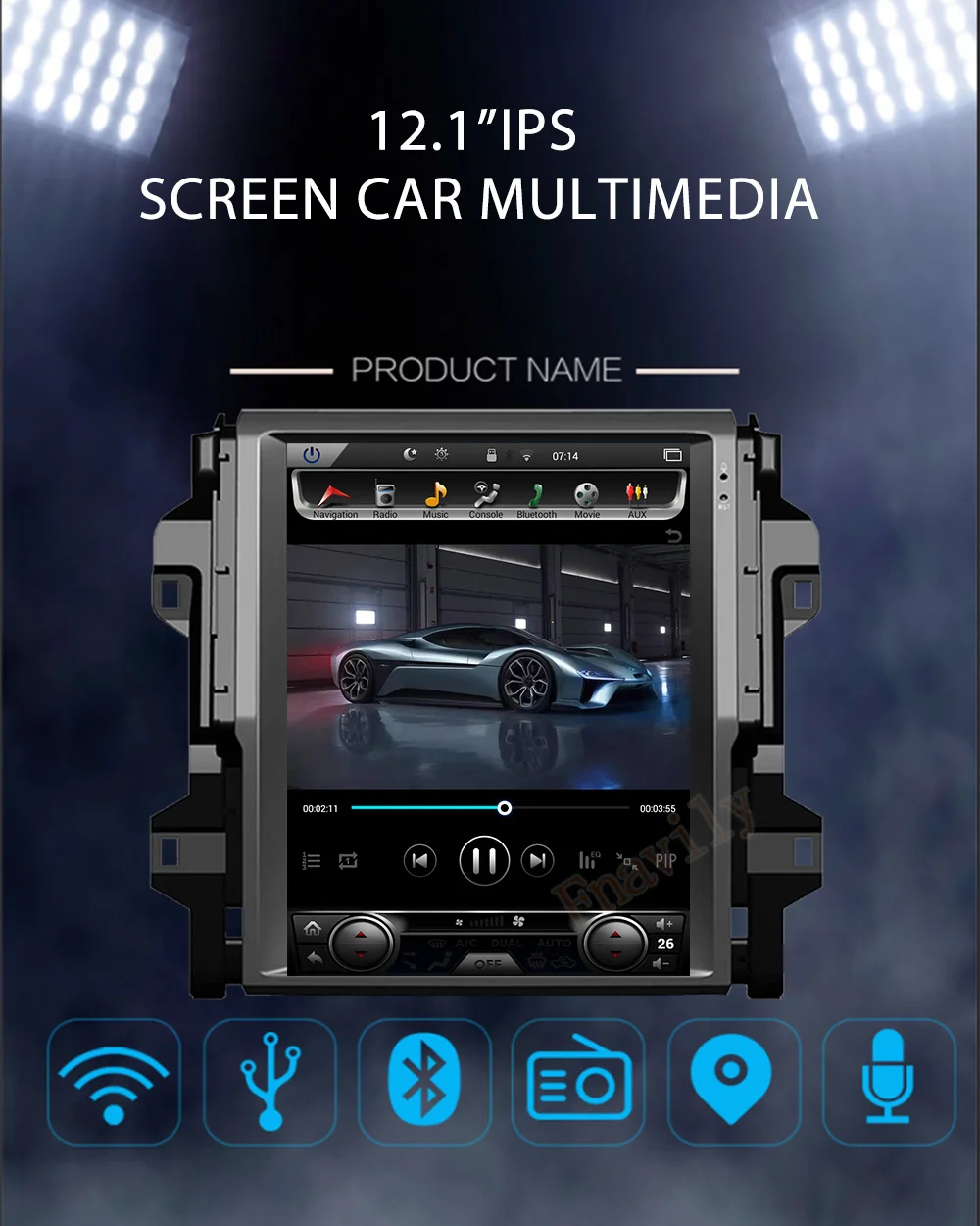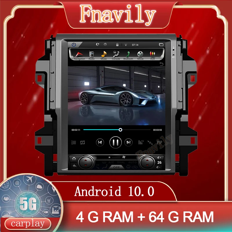 Автомагнитола на Android 10 для Toyota Fortuner-Revo, автомобильный мультимедийный проигрыватель с GPS-навигацией и вертикальным экраном в стиле Тесла 12,1 дюйма