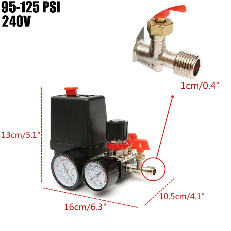 240V380V 7,25-125 фунтов на квадратный дюйм регулятор воздушного потока воздуха компрессор насос Давление Управление переключатель 0,05-1.2Mpa воздушный насос Управление клапан с манометром