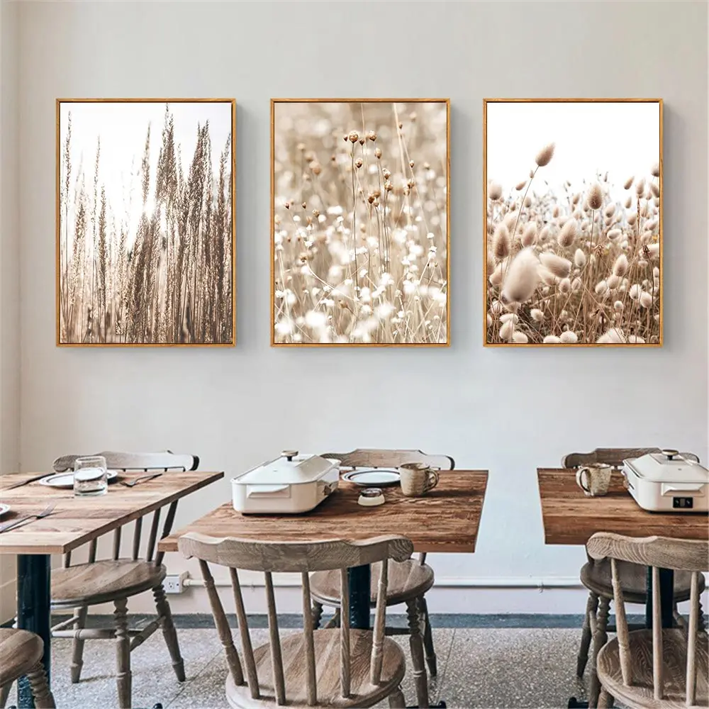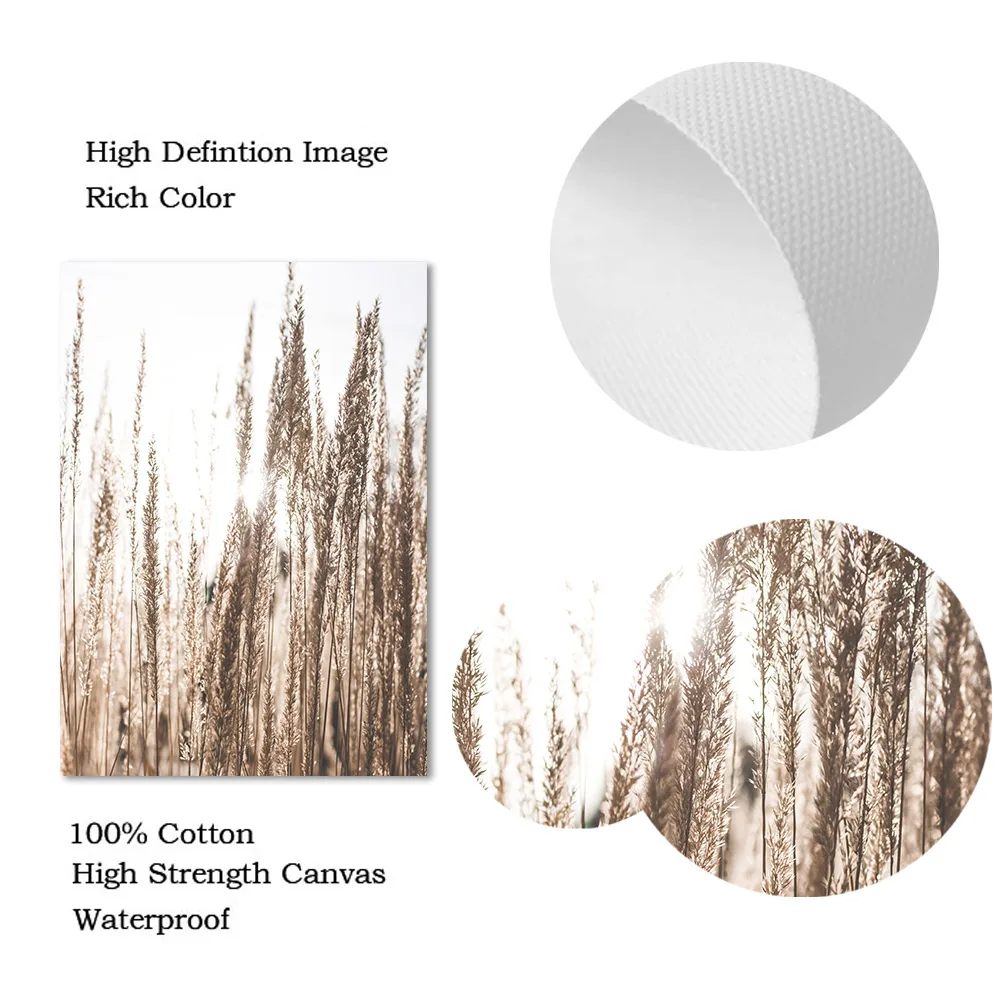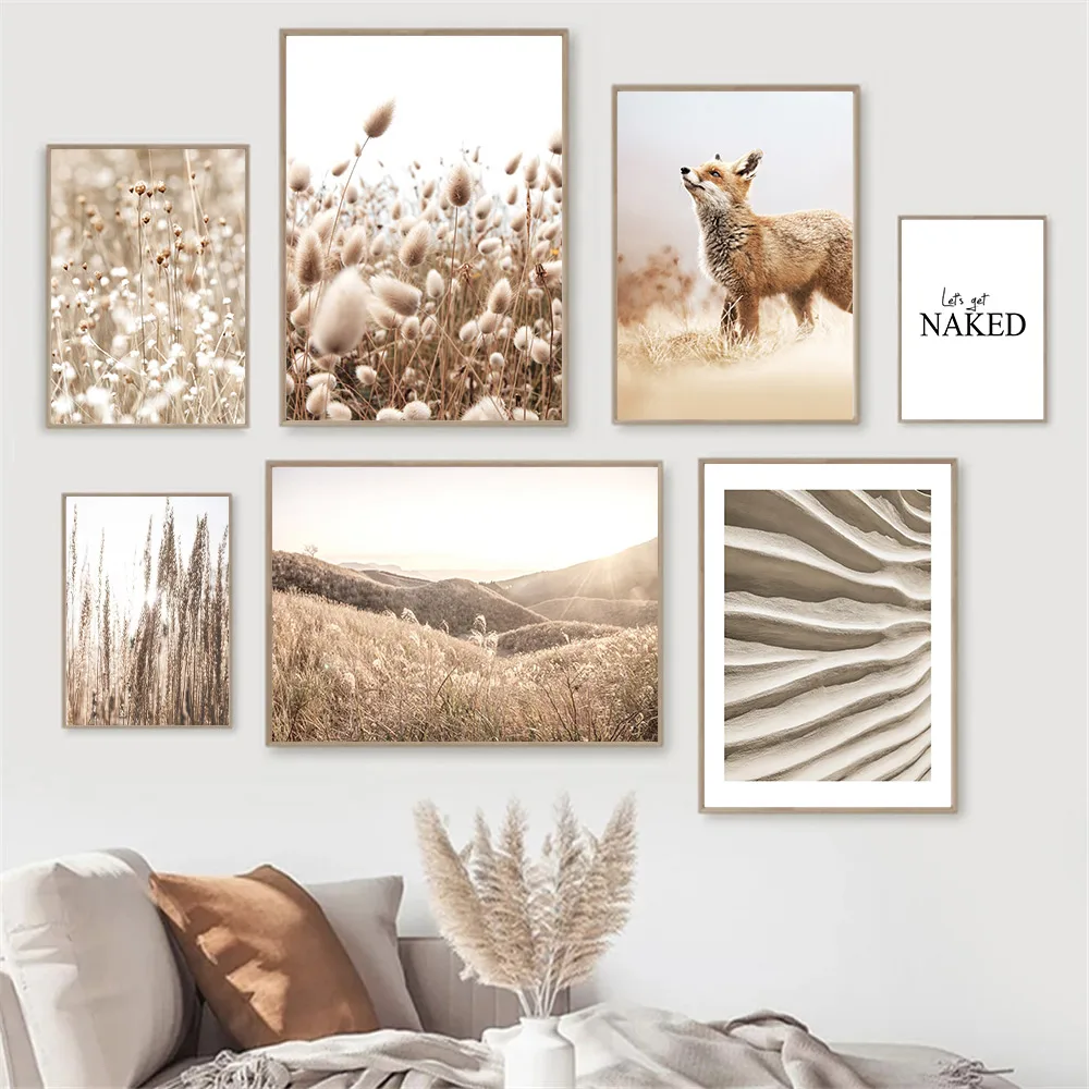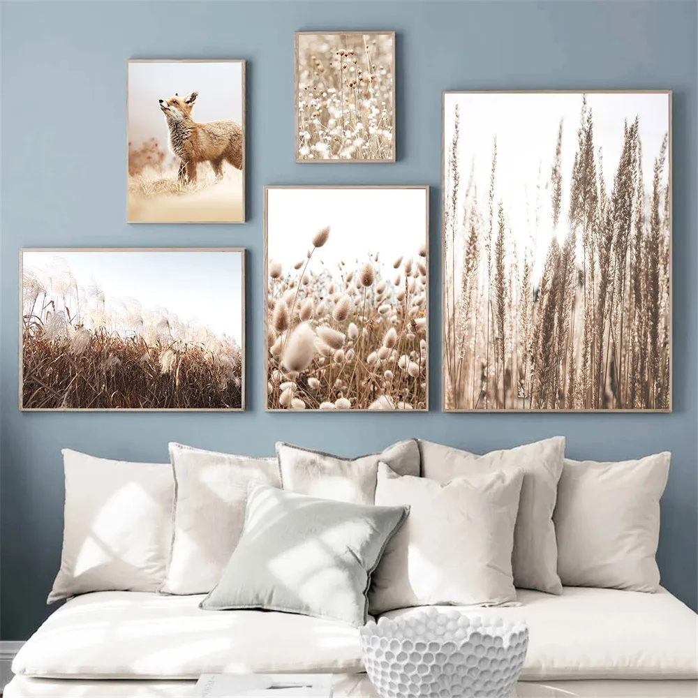 Настенный постер с изображением бежевой травы, сладкой тростницы, песчаной лисы, живопись, природные растения, печать на холсте, настенные картины в скандинавском стиле для декора гостиной