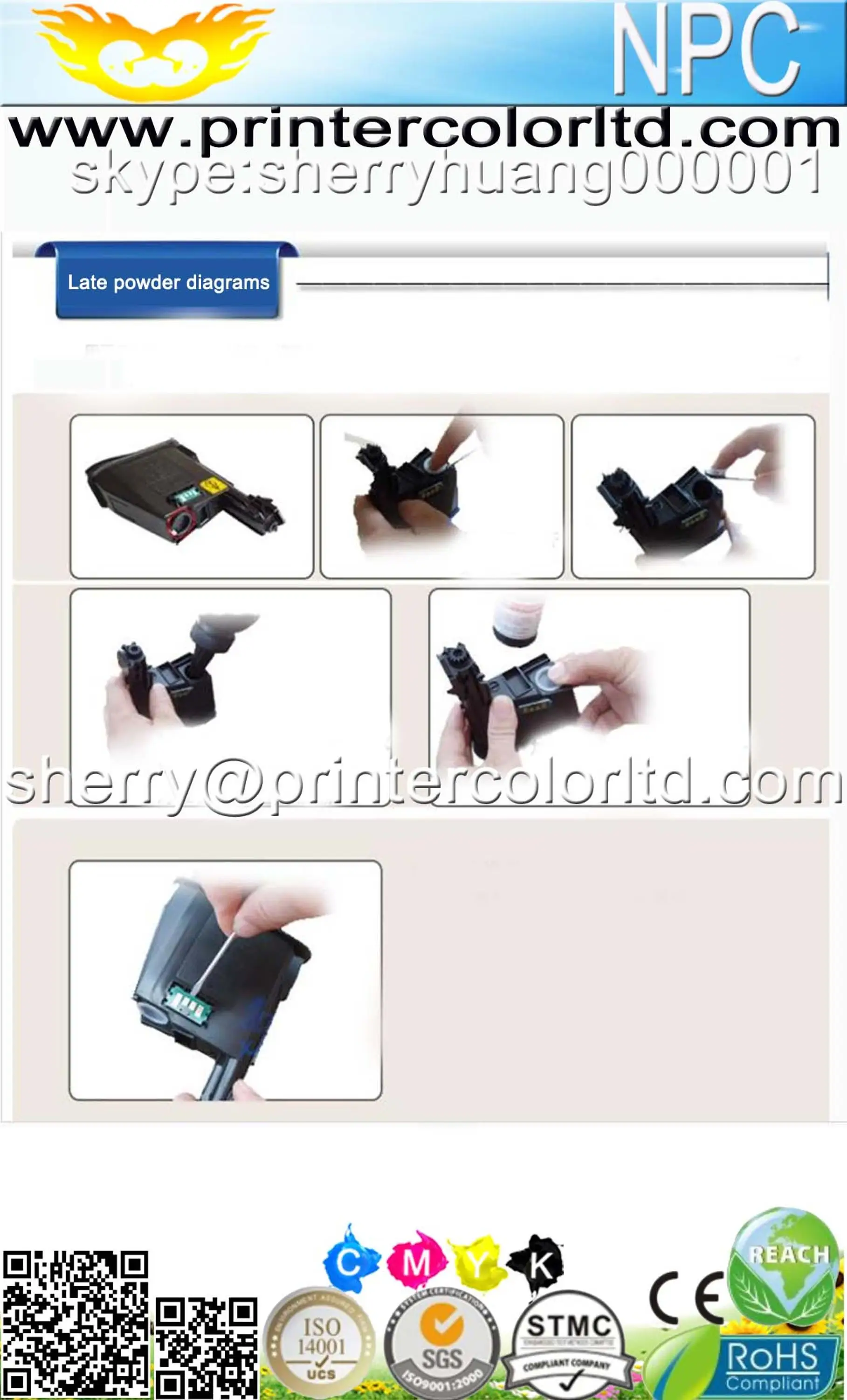 7. Все Тонер-порошок проводится один за другим в вакуумной утечки испытательных машин, чтобы обеспечить отсутствие утечки во время доставки8. Черного цвета, резкость эффекта печати может соответствовать или превосходить OEM9. Строгий контроль качества во время производства и 100% тест на печать перед отправкой