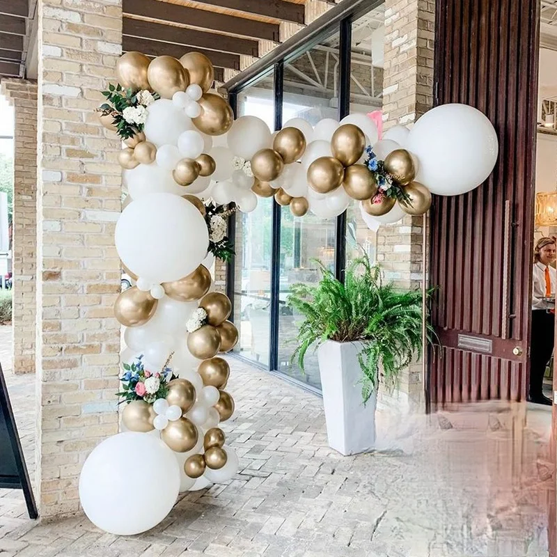 51018 дюймов высококачественные Матовые Белые латексные воздушные шары с золотом металлик воздушные гелиевые шары украшение для дня рождения Новогодние свадебные шары