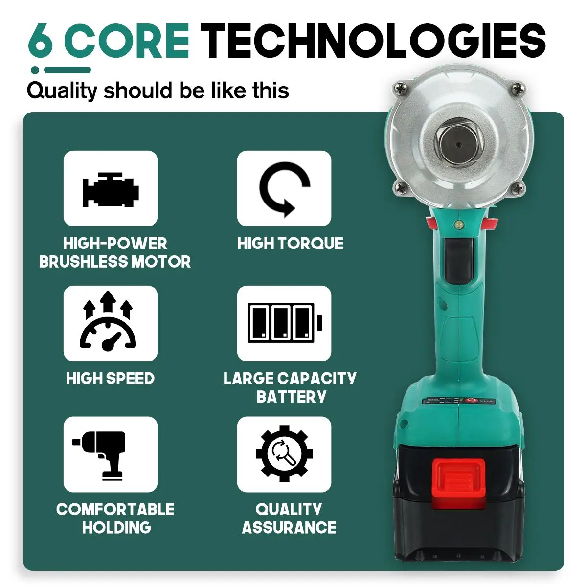 -1900N.m высокий крутящий момент: вал из вольфрамовой стали, высокая твердость и износостойкость, используется для ремонта тяжелого оборудования, промышленного обслуживания или любой другой работы, которая требует использования сильных больших гаек и болтов.