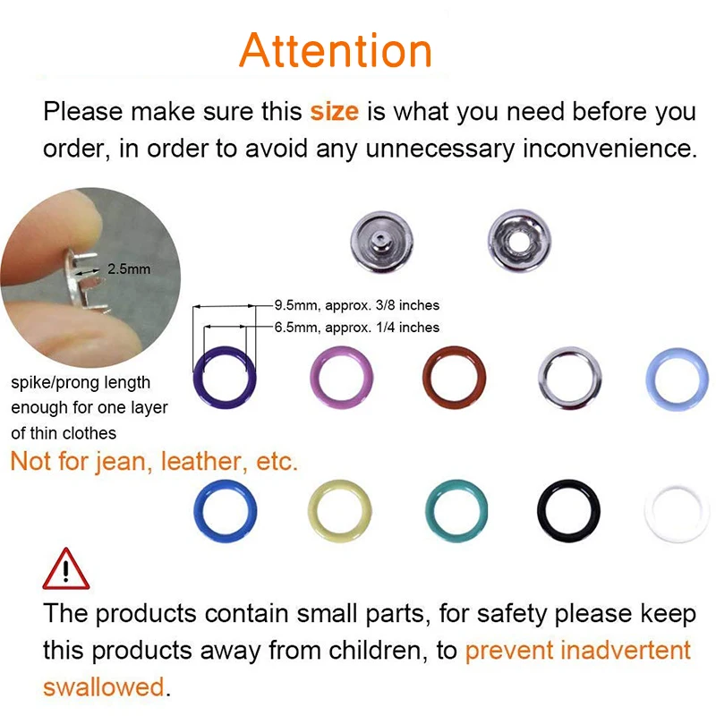 Поделки своими рукамиВесь диаметр approx.9.5мм/0,37 дюйма. Различные цвета с различными комплектами. Этого набора достаточно для удовлетворения ваших различных потребностей в DIY ремеслах или изготовлении пользовательской детской одежды самостоятельно.