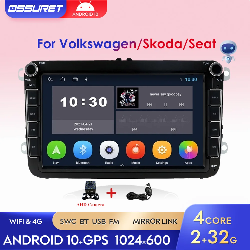 2G 32G Android 10 автомобильный проигрыватель с радио и GPS для VW Volkswagen Skoda Octavia Golf Touran Passat Polo Tiguan Jetta Yeti 2Din стерео WIFI