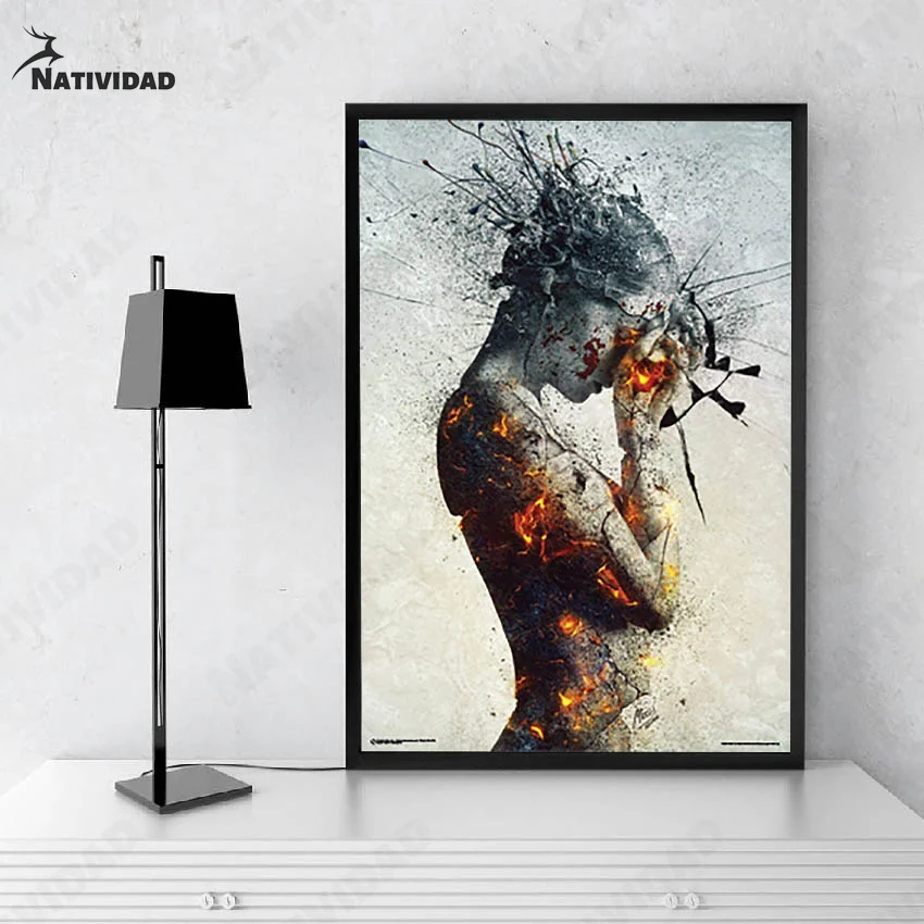 Холщовая живопись абстрактный герой искусство сжигающая девушка фон печать плакат в скандинавском стиле спальня гостиная украшение для дома